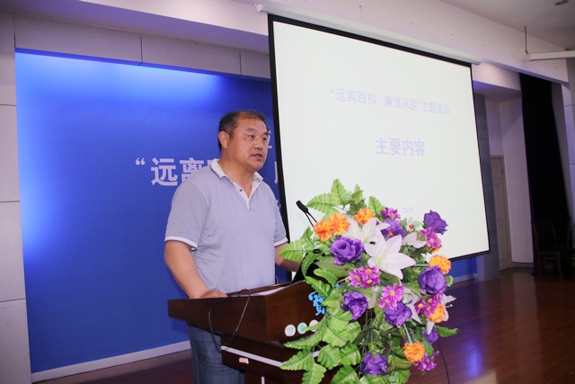 與會人員觀看了省人民檢察院制作的警示教育片《折翅的天使》,該警示片給全院干部職工帶來了強烈的震憾。我院黨支部書記王心亞從活動的背景、主要原因、活動的主要目的、活動時間、糾正時間、具體措施、再認識等六點對專項活動方案進行詳細的解讀與部署。隨后,縣檢察院預防辦主任、黨總支書記房榮泰同志為全體參會人員作了警示教育專題報告。房書記從回扣的定義、回扣的各種形式、以及當前反腐力度等作了深刻的講述,并對我院職工提出了殷切期望。
